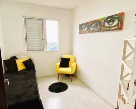 Possui 2 dormitórios, sendo 1 suíte, sala de estar e jantar com ambientes integrados, além de cozinha com armários planejados e área gourmet também com planejados.