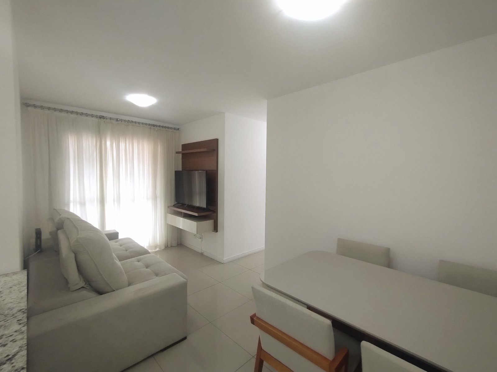 Sala de estar e jantar integradas.