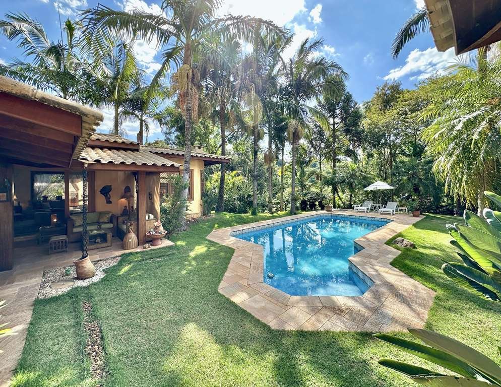 Linda casa estilo campo, em terreno amplo de 1.212 m², cercada pelo verde e com total privacidade. Projeto em “U”, ambientes amplos e integrados, acabamento em madeira Freijó, living para vários ambientes, varanda, espaço gourmet e piscina.