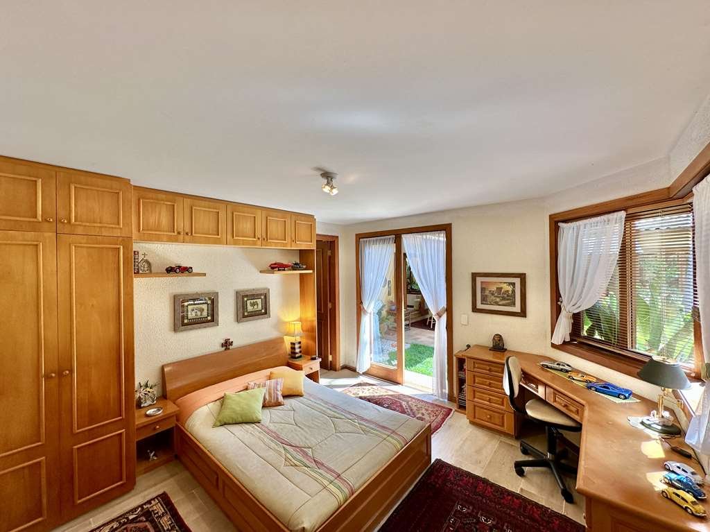São 4 suítes, sendo 2 no térreo, jardim com paisagismo formado e segurança 24h.