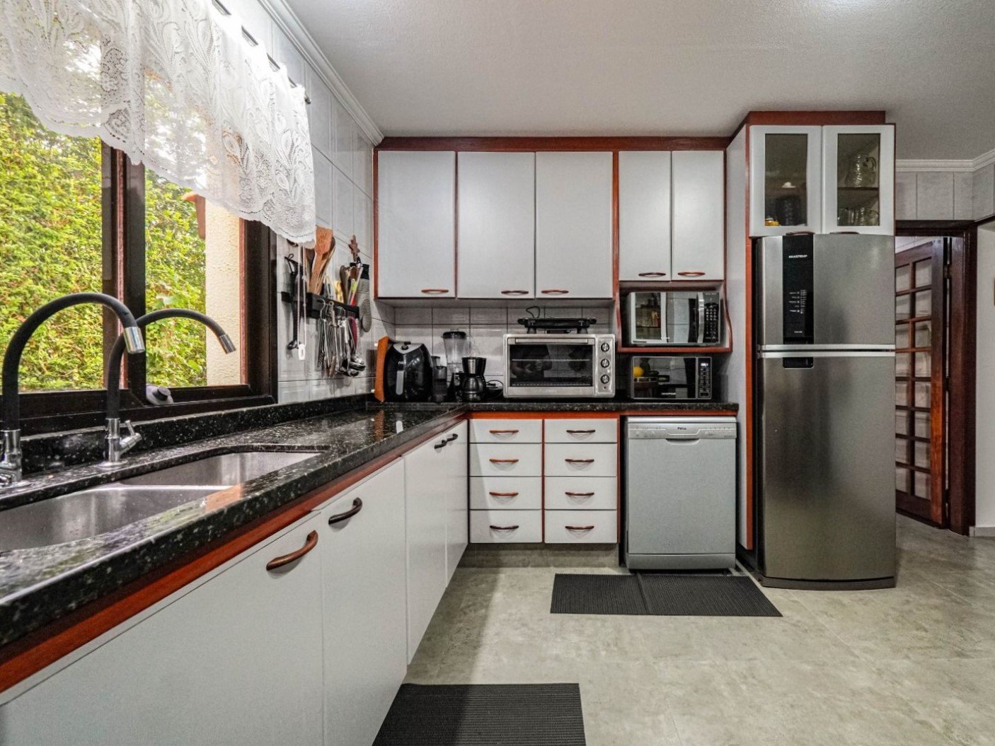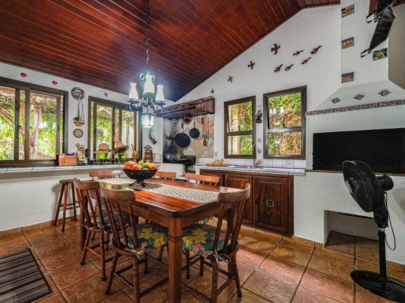 Conta ainda com espaço gourmet com churrasqueira, sala de jogos, lounge, piscina aquecida, pomar, suíte de serviço e oficina com lavabo. A casa possui aquecimento central, gerador e paisagismo.