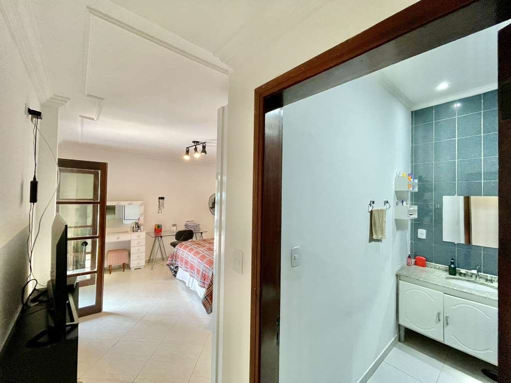 São 3 suítes: duas no térreo, ambas com armários e portas balcão que abrem para a varanda e a área de lazer, com banheiros que possuem bancadas em mármore e box de vidro. No piso superior, está a suíte master, que oferece privacidade e conta com dois closets (sr. e sra.) e uma ampla sala de banho com hidromassagem.